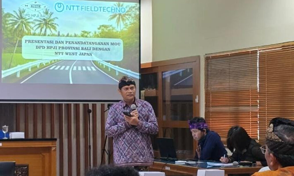 Denpasar (Atnews) – Dewan Pengurus Daerah Himpunan Pengembangan Jalan Indonesia (DPD HPJI) Provinsi Bali menandatangani nota kesepahaman kerja sama dengan NTT West Japan Group, melalui anak perusahaannya NTT FieldTechno Corporation, dalam rangka memperkuat kolaborasi knowledge sharing dan pilot implementation teknologi Audin AI untuk meningkatkan efisiensi pemeliharaan infrastruktur jalan di Bali.